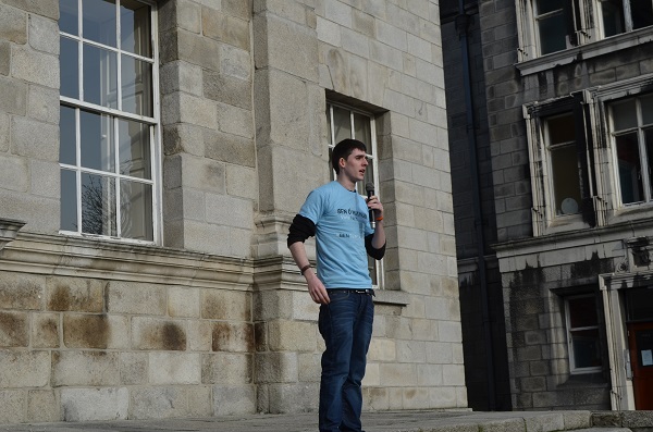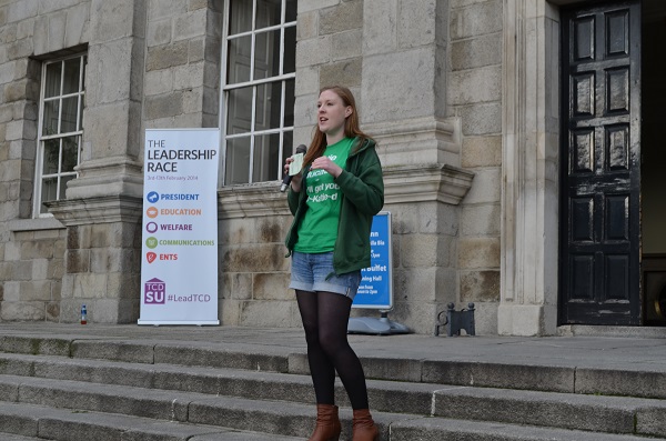 While addressing students from the steps of the Dining Hall, Byrne spoke about some of the key issues from her manifesto. She mentioned her proposal for improved organisation and structure in the Student’s Union; noting accessibility to be a “simple solution” for solving many problems with Trinity’s educational structure, she reiterated the need to encourage lecturers to further utilize the Blackboard facilities that extracted a huge cost to introduce, and particularly to make it a central hub for module information, feedback and assessment.